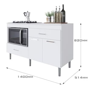Balcão Armário de Cozinha Para Cooktop 1,40m 5 Bocas 2 Portas Turim