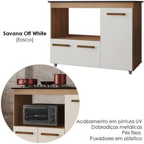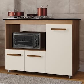 Balcão Para Cooktop Ana, traz organização e praticidade para o seu dia a dia. Produzido em MDP (12/15 mm), com acabamento em pintura UV. Possui tampo com recorte para fogão cooktop 4 bocas (53,5x36 cm), portas com dobradiças metálicas, nicho funcional para microondas/forno (68x36,3 cm) e puxadores e pés em plástico. NÃO ACOMPANHA FOGÃO/ COOKTOP. Este produto será entregue em 01 volume.