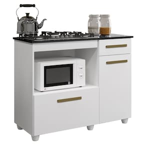 Versatilidade: Possui portas do tipo bater e basculante, além de gaveta funcional para talheres.