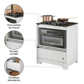 Balcão Para Cooktop 4 Bocas Notável 3110 Branco O Balcao para Cooktop da Notavel Moveis 3110 ainda possui um espaco amplo para acomodar fornos ou micro-ondas, permitindo que voce tenha todos os seus aparelhos essenciais em um so lugar. Este balcao foi projetado especialmente para cooktops de 4 bocas, garantindo que o seu aparelho esteja sempre seguro e nivelado durante o uso. E com um gavetao espacoso, voce pode guardar seus utensilios de cozinha de forma organizada e pratica. ATENCAO: * Fotos meramente ilustrativas, demais itens apenas decorativos. * Tampo ja vem cortado com espaco para o cooktop de 4 bocas. * Cooktop e forno nao acompanham balcao. MODELO: 3110
