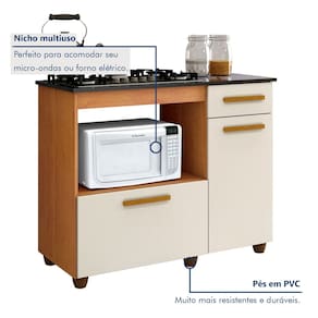 Versatilidade: Possui portas do tipo bater e basculante, além de gaveta funcional para talheres.