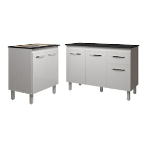 Balcão Para Cooktop 5 Bocas Fran Branco E Armário Aline 118 Cm Cozinha Gabinete Branco Com Tampo Tampão Preto Transforme sua cozinha com este Kit, que une funcionalidade e design! Inclui um balcão Aline de 120 cm com tampo, perfeito para preparo de alimentos e refeições, e um balcão Fran para cooktop de 5 bocas, projetado para instalação segura e organizada. Com materiais de alta durabilidade e acabamento sofisticado, este kit é ideal para quem busca otimizar o espaço com estilo. Modernize sua cozinha com um produto que combina praticidade, qualidade e design! Garanta já o seu e aproveite a comodidade que sua cozinha merece! Características do Balcão:
