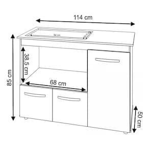 O Balcão de Fogão Gabinete para Cooktop 4 e 5 Bocas Ana é o produto ideal para compor sua decoração e otimizar seu espaço, desenvolvido para acrescentar beleza e praticidade para sua copa ou cozinha. Com excelente espaço interno para armazenar os utensílios necessários, ele conta com 03 portas, pés de pvc reguláveis, puxadores de alumínio, dobradiças metálicas e com um excelente acabamento com pintura UV fosco. Demais, né? Tudo produzido em 100% MDP que agrega mais resistência e durabilidade ao produto Adquira já o seu Balcão para Cooktop Ana e arrase na decoração da sua cozinha! Dimensões: Altura: 83 cm Largura: 114 cm Profundidade: 50 cm Peso: 30 KG Peso suportado: 30 kg distribuídos Especificações do Produto: Estrutura: MDP; Material do Fundo: Madefibra; Acabamento: Fosco; Quantidade de Portas: 3; Possui Tampo: acompanha tampo de madeira (MDP) com corte