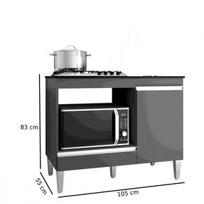 - Estrutura em MDP - Pintura em UV Fosco - 1 Porta com Dobradiças Metálicas - 1 Gaveta com Corrediças Metálicas - Puxadores em PVC - Indicado para Fogão Cooktop de 4 ou 5 bocas - Tampo marcado para recorte e deverá ser recortado para usar Cooktop - Nicho para Forno ou Microondas - Espaço interno para Butijão de gás - Pés em PVC com Regulagem de altura - Produzida com materiais de qualidade
