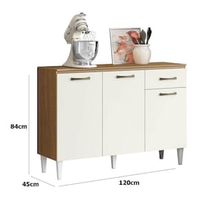- Não nos responsabilizamos pela montagem dos produtos. Todos os produtos acompanham acessórios para que sejam montados. - Não nos responsabilizamos, no ato da , por subir escadas/elevadores ou transporte por guincho em apartamentos. Eventuais despesas são de responsabilidade do comprador; - Confira as dimensões deste produto e certifique-se de que passará normalmente por supostos elevadores, portas, escadas e/ou corredores de sua residência; - Não aceitamos de produtos com caixas violadas ou materiais danificados, confira a quantidade de volumes e se o que está sendo entregue corresponde com a mercadoria adquirida, não aceitamos após o prazo de arrependimento de 7 dias corridos. Características Gerais do Produto: - Altura: 84 cm - Gavetas: 1 Gaveta com Corrediças Metálicas; - Ideal para: Cozinha - Informações Adicionais: Não Acompanha Objetos Decorativos; - Largura: 120 cm - Material: MDP - Pintura: Puxadores de Plástico; - Portas: 3 Portas - Profundidade: 45 cm - Tipo de Porta: Porta de Bater - Acabamento: Acabamento em Verniz Texturizado - Informações Adicionais: - Não nos responsabilizamos pela montagem dos produtos. Todos os produtos acompanham acessórios para que sejam montados. - Não nos responsabilizamos, no ato da , por subir escadas/elevadores ou transporte por guincho em apartamentos. Eventuais despesas são de responsabilidade do comprador - Confira as dimensões deste produto e certifique-se de que passará normalmente por supostos elevadores, portas, escadas e/ou corredores de sua residência - Não aceitamos de produtos com caixas violadas ou materiais danificados, confira a quantidade de volumes e se o que está sendo entregue corresponde com a mercadoria adquirida, não aceitamos após o prazo de arrependimento de 7 dias corridos.