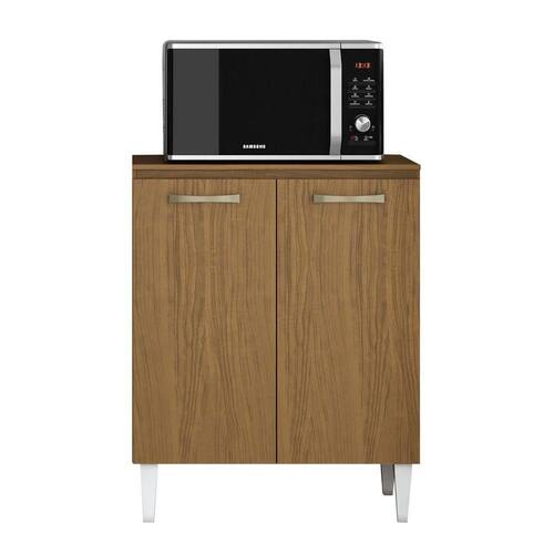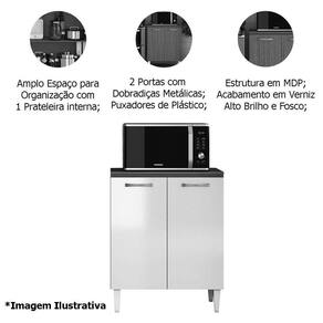 Característica do Balcão para Cozinha 70cm 2 Portas Halena: - Estrutura em MDP; - 2 Portas com dobradiças metálicas; - Puxadores de Plástico; - Acabamento em verniz texturizado; - Não acompanha objetos decorativos; - Montagem por conta do comprador;