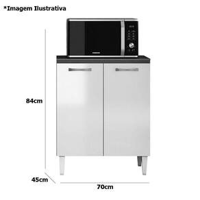 - Não nos responsabilizamos pela montagem dos produtos. Todos os produtos acompanham acessórios para que sejam montados. - Não nos responsabilizamos, no ato da , por subir escadas/elevadores ou transporte por guincho em apartamentos. Eventuais despesas são de responsabilidade do comprador; - Confira as dimensões deste produto e certifique-se de que passará normalmente por supostos elevadores, portas, escadas e/ou corredores de sua residência; - Não aceitamos de produtos com caixas violadas ou materiais danificados, confira a quantidade de volumes e se o que está sendo entregue corresponde com a mercadoria adquirida, não aceitamos após o prazo de arrependimento de 7 dias corridos. Características Gerais do Produto: - Altura: 84 cm - Gavetas: Não Possui Gavetas - Ideal para: Cozinha/Lavanderia - Informações Adicionais: Não Acompanha Objetos Decorativos; - Largura: 70 cm - Material: MDP - Pintura: Puxadores de Plástico; - Portas: 2 Portas - Profundidade: 45 cm - Tipo de Porta: Porta de Bater - Acabamento: Acabamento em Verniz Alto Brilho e Fosco - Informações Adicionais: - Não nos responsabilizamos pela montagem dos produtos. Todos os produtos acompanham acessórios para que sejam montados. - Não nos responsabilizamos, no ato da , por subir escadas/elevadores ou transporte por guincho em apartamentos. Eventuais despesas são de responsabilidade do comprador - Confira as dimensões deste produto e certifique-se de que passará normalmente por supostos elevadores, portas, escadas e/ou corredores de sua residência - Não aceitamos de produtos com caixas violadas ou materiais danificados, confira a quantidade de volumes e se o que está sendo entregue corresponde com a mercadoria adquirida, não aceitamos após o prazo de arrependimento de 7 dias corridos.