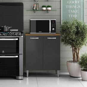 Característica do Balcão para Cozinha 70cm 2 Portas Halena: - Estrutura em MDP; - 2 Portas com dobradiças metálicas; - Puxadores de Plástico; - Acabamento em verniz texturizado; - Não acompanha objetos decorativos; - Montagem por conta do comprador;