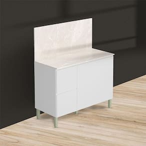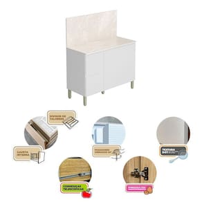 Balcão para Cozinha Ambiente Art Branco Ártico com Tampo Painel 120cm Travertino – Kits Paraná