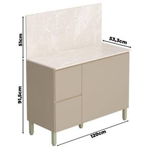 Balcão para Cozinha Art Vanilla com Tampo Painel 120cm Travertino Kits Paraná