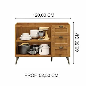 Balcão para Cozinha em Madeira 120Cm 2 portas e 3 Gavetas Versalles
