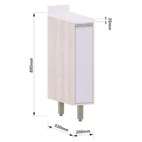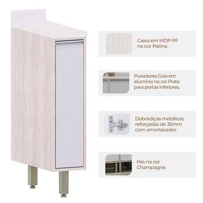 O Balcão para Cozinha Pequeno com 1 Porta da linha Atenas é a solução perfeita para otimizar espaços com elegância e funcionalidade. Com 89,5 cm de altura, 20 cm de largura e 53 cm de profundidade, é ideal para cozinhas moduladas, encaixando-se facilmente em locais reduzidos. Fabricado em MDP de 15 mm, conta com acabamento sofisticado em Patina FF com impressão frontal BP, além de uma porta com dobradiças metálicas de 35 mm com amortecimento, que proporciona fechamento suave. A prateleira interna auxilia na organização, enquanto o puxador gola em alumínio prata anodizado adiciona um toque moderno ao design compacto e prático do móvel.
