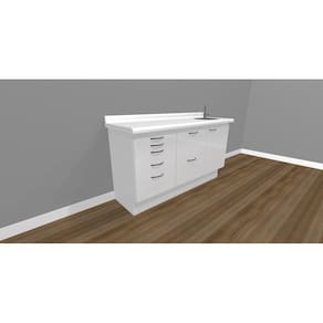 - Tampo com revestimento malamínico, sem emendas entre tampo e rodopia, ideal para assepsia