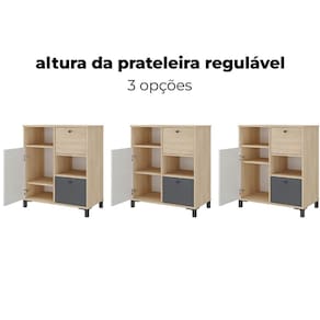 • Pintura: Prateleira Interna com 3 Regulagens de Altura; Puxadores em Metal;