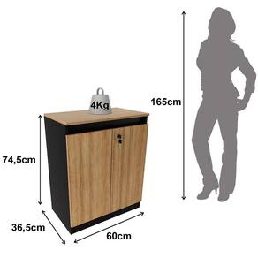 Balcão Para Escritório 2 Portas Com Chave Pequeno Amêndoa/preto Precisando de um Balcão com amplo espaço e com praticidade possuindo características como prateleira interna com regulagem de altura e chave que tranca as 2 portas? Então encontrou o móvel perfeito! Aproveite esse e outros produtos incríveis só aqui na Casa Chick! Dimensões do Balcão para Escritório 2 Portas com Chave Pequeno: - Altura: 60 cm - Largura: 74,5 cm - Profundidade: 36,5 cm