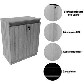 Características do Balcão para Escritório 2 Portas com Chave Pequeno: - Estrutura em MDP; - Acabamento em BP; - 2 Portas com dobradiças metálicas; - 1 porta com chave; - 1 prateleira interna; - Suporta até 4kg no tampo e 4kg prateleira; - Não acompanha objetos decorativos; - Montagem por conta do comprador;