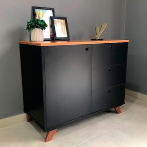 Mais que um balcão de escritório, ideal para guardar e organizar os mais diversos itens no compartimento interno, esse modelo ainda conta com charme inegável , sendo capaz de se criar um cantinho do café sobre o tampo, ou seja, esse balcão se transformará em um ponto de encontro, um local onde colegas de trabalho se reúnem para compartilhar experiências e soluções. Além de ser uma peça central no escritório, esse balcão também se destaca como um elegante aparador, já que a combinação de seu design atemporal com a funcionalidade versátil faz dele um elemento essencial, que se adapta facilmente a diferentes estilos e necessidades.
