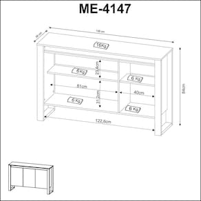 Peso Suportado 16kg no Tampo e 4kg Cada Prateleira