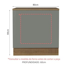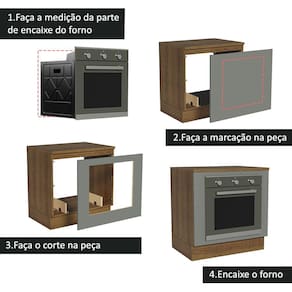 Com profundidade de 60 cm, é ideal para a instalação de fornos de embutir. Para isso, a parte frontal do balcão deve ser recortada conforme as medidas do seu forno.