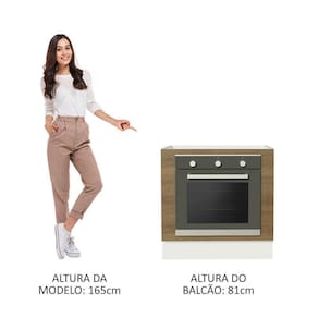 O acabamento combina os tons branco e amadeirado Rustic. É feito em Pintura Poliéster com 7 camadas de proteção, que garante resistência contra os efeitos do álcool, da água e do calor e proporciona maior durabilidade.
