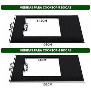 Recorte para cooktops de 4 ou 5 bocas: Compatível com os modelos mais modernos, oferecendo instalação prática e segura.