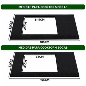 Recorte para cooktops de 4 ou 5 bocas: Compatível com os modelos mais modernos, oferecendo instalação prática e segura.