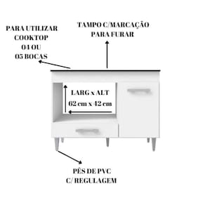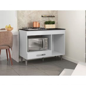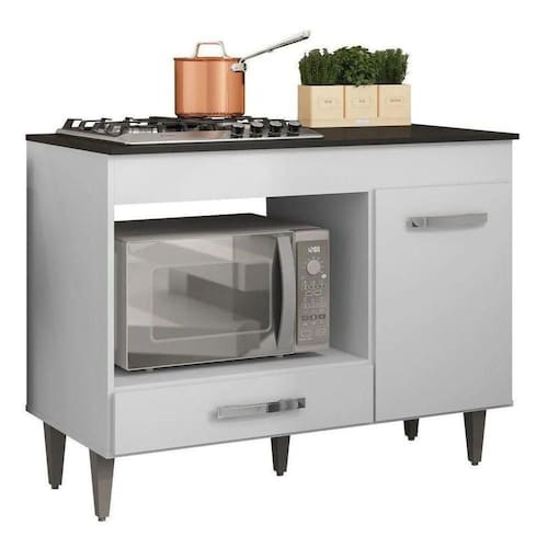 O Balcão para Cooktop 4 Bocas e Forno Microondas Carla Branco da AJL Móveis, vai agregar charme e modernidade para sua cozinha pois é um móvel prático e funcional! Conta com 1 porta e 1 gaveta com amplo espaço interno que garante maior organização, pés em PVC e espaço para forno elétrico ou microondas. Acompanha tampo com marcação para furação encaixe de cooktop 4 bocas. Além disso, possui estrutura confeccionada em MDP de alta qualidade com acabamento em pintura UV garantindo maior durabilidade ao produto. Confira !