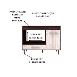 - Tampo com marcação para furação de 54 x 36 cm ideal para cooktop 4 bocas