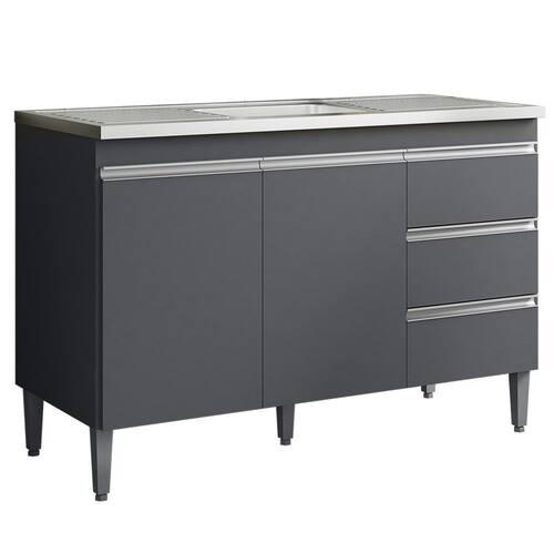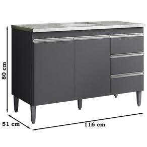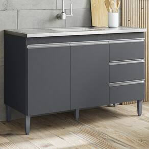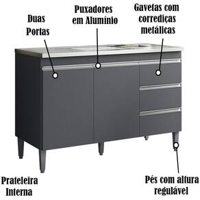 Balcao Para Pia 116 cm 2 Portas Andreia, é ideal para quem busca qualidade e sofisticação para compor sua cozinha da forma que desejar. Estrutura em MDP de 12 e 15 mm, acabamento com pintura UV (Fosco). Composto por 2 portas articuladas com dobradiças metálicas, 3 gavetas com corrediças metálicas com deslize suave, espaço para colocação de pia (pia não inclusa), prateleira interna, puxadores em alumínio, acompanha pés em PVC. Este é um módulo avulso dos produtos REAJL, você pode adquirir outras peças dessa composição que são vendidas separadamente. Produzido com controle de qualidade e com excelente acabamento. Este móvel chegará na sua casa separado em 1 volume.