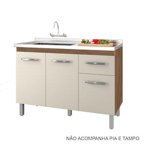 Características: Estrutura em MDP Acabamento em pintura UV 03 Portas com Dobradiças Metálicas 01 Gaveta com Corrediças Metálicas Puxadores em Plástico Cromados Altura dos Pés 16 cm Pés com Regulagem Prateleiras e Amplo Espaço Interno NÃO ACOMPANHA PIA E TAMPO