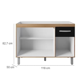 Dimensões: Balcão Anita Altura: 82,7 cm Largura: 118 cm Profundidade: 50 cm