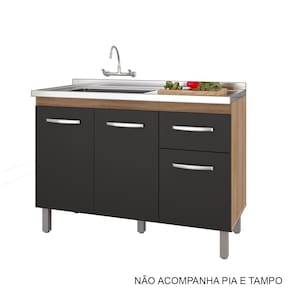 Características: Estrutura em MDP Acabamento em pintura UV 03 Portas com Dobradiças Metálicas 01 Gaveta com Corrediças Metálicas Puxadores em Plástico Cromados Altura dos Pés 16 cm Pés com Regulagem Prateleiras e Amplo Espaço Interno NÃO ACOMPANHA PIA E TAMPO