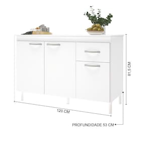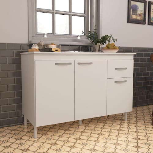 Cozinha com módulos independente de fácil arranjo, pintura fosca fácil de limpar e amplo espaço interno. Obs: NÃO acompanha tampo-cuba.