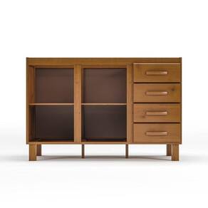 Seu design clássico conta com pés torneados, que trazem charme e sofisticação, além de excelente estabilidade. O móvel possui dobradiças metálicas, corrediças metálicas e fechos magnéticos, garantindo maior suavidade na abertura e fechamento das portas e gavetas.