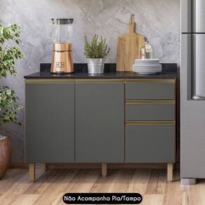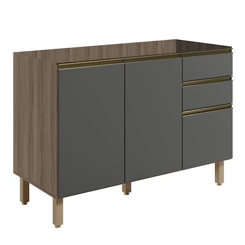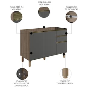 O Balcão Para Pia 120cm Sem Tampo Maly N03 Carvalho/Grafite, da Mpozenato em MDF de 15mm com acabamento em pintura UV é uma escolha elegante e funcional para uma Cozinha Moderna.