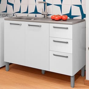 O Balcão para Pia é a escolha ideal para quem busca praticidade na organização da cozinha. Produzido em MDP de 12mm e 15mm, com acabamento em pintura UV que garante maior proteção e beleza ao móvel. Conta com 03 portas com dobradiças metálicas, 02 gavetas com corrediças telescópicas, além de 01 prateleira interna. Os puxadores ergonômicos e os pés reguláveis, ambos em plástico resistente, proporcionam conforto no uso e estabilidade ao móvel. Não acompanha pia nem tampo. Este móvel chegará em sua casa separado em 01 volume.