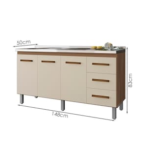 Balcao Para Pia 3P 3G 150 cm Diana Mobbs - Bege