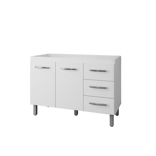 O Balcão de Pia Bianca 1,20cm é ideal para quem busca praticidade e elegância na cozinha. Com um design moderno e atemporal, oferece amplo espaço de armazenamento, contando com 2 portas e 3 gavetas, perfeitas para organizar utensílios, panelas e produtos de limpeza.