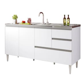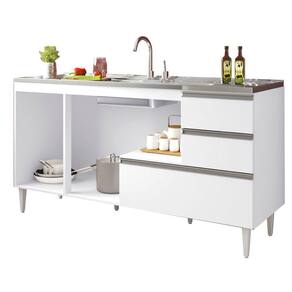 O Balcão para pia de 1,60 metro Maceió com gavetão, é fabricado em MDP de 15mm para maior durabilidade, pintura com acabamento uv Branco Brilho. O Balcão para pia Maceió possui corrediças telescópicas nas gavetas e no gavetão, todas as portas possuem dobradiças metálicas. Moderno o Balcão para pia Maceió possui puxadores perfil aluminio em todas as portas, gavetas e gavetão. Com uma prateleira interna na porta menor. Pés de plástico com regulagem de altura para correção de possiveis desniveis.
