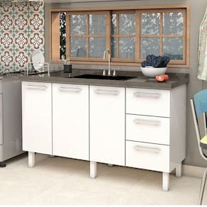 CARACTERÍSTICAS TÉCNICAS - Produto: Gabinete (DESMONTADO) - Modelo: Vênus Flat - Marca: Cozimax - Quantidade de portas: 3 - Quantidade de gavetas: 3 - Possui prateleira interna: Sim - Pintura: Pó eletrostática - Estrutura: Aço eletrogalvanizado - Puxadores: ABS com acabamento metalizado - Pés: Polipropileno virgem e com regulagem de altura - Dobradiças: Sistema de molas (padrão) - Corrediças: Roldana com abertura parcial Acabamento da Gaveta: Pintura Acabamento da Porta: Pintura Acabamento da Prateleira: Pintura Acabamento dos Pés: Altura do Espelho: Altura do Espelho 01: Altura do Espelho 02: Altura do Espelho 03: Altura do Espelho 04: Altura do Espelho 05: Altura do Espelho 06: Altura dos Pés: 21 Ambiente Principal: Cozinha Complexidade da Montagem: Média: pode ser montado por mais de uma pessoa e/ou necessite de maior conhecimento para montagem Cor: Branco Cor do Produto: Branco Cor Flex: Cor Interna: Escala de Brilho: Brilhante Escala de Brilho da Gaveta: Brilhante Escala de Brilho da Porta: Brilhante Escala de Brilho da Prateleira: Fosco Espessura do Espelho: Fita Integrada: Formato do Espelho: Gaveta com Chave: Não Informações Complementares: Itens Inclusos: 1 Armário, Kit Ferragens e Manual de Montagem Largura do Espelho: Largura do Espelho 01: Largura do Espelho 02: Largura do Espelho 03: Largura do Espelho 04: Largura do Espelho 05: Largura do Espelho 06: Linha ou Coleção: Vênus Manual de Especificação Técnica: Manual de Montagem e Instalação: https://cdn2.madeiramadeira.com.br/atributo/cozimax/1086470-kit459-manual-gab-venus-flat-140.pdf Material da Gaveta: Polipropileno Material da Porta: Aço Material da Prateleira: Aço Material do Puxador da Gaveta: ABS Material do Puxador da Porta: ABS Material dos Pés: Polipropileno Material Principal: Aço Montagem Flex: Necessita Montagem: Sim Origem do Produto: Nacional Pés Reguláveis: Sim Peso: 23 Peso Máximo por Gaveta: 5 Peso Máximo por Prateleira: 7 Possui Espelho: Não Possui Possui Pés: 04 Possui Portas: 02 Possui Prateleiras: 01 Possui Rodízio: Não Recomendações de Uso, Manutenção e Limpeza: Pano Umedecido Rodízio com Trava: Sapatas Niveladoras: Sim Sistema de Montagem: Parafusos Suporta Até (kg): 70 Tipo de Corrediça da Gaveta: Simples Tipo de Dobradiça/Corrediça da Porta: Simples Tipo de Fixação do Espelho: Tipo de Madeira Maciça: Tipo de Madeira Maciça da Gaveta: Tipo de Madeira Maciça da Porta: Tipo de Madeira Maciça da Prateleira: Tipo de Madeira Maciça do Puxador da Gaveta: Tipo de Madeira Maciça do Puxador da Porta: Tipo de Madeira Maciça dos Pés: Tipo de Porta: Bater Tipo de Puxador da Gaveta: Externo Tipo de Puxador da Porta: Externo undefined: