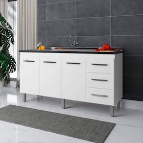 Balcão para Pia de Cozinha 1,60m Emily com 3 Portas e 3 Gavetas Branco - Moblis