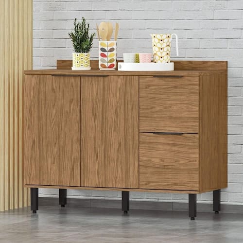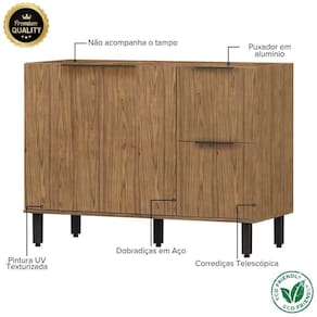 Características Gerais do Produto: - Acabamento: Pintura UV Texturizada / Alto brilho - Acompanha Manual: Sim - Altura (cm): 89,50cm - Largura (cm): 120cm - Profundidade (cm): 51,6cm - Peso (Kg): 37,51kg - Corrediças: Telescópica - Matéria-prima: MDF 15mm Puxadores em alumínio Dobradiças em aço com amortecimento - Quantidade de gavetas: 2 Gavetas externas, 1 gaveta interna - Garantia: 3 Meses - Quantidade de Portas: 2 - Requer montagem: Sim