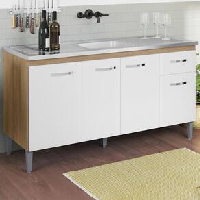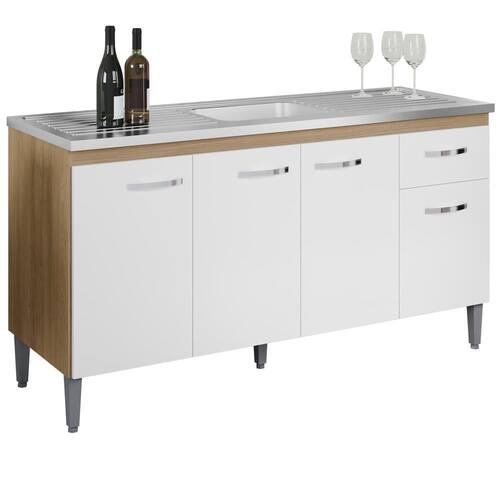 Balcão Para Pia Gabriela, funcional e compacto para seu dia a dia. Estrutura em MDP (12/15 mm - fundo 3 mm) com acabamento em pintura UV. Composto por portas e gavetas com dobradiças e corrediças metálicas, puxadores e pés em plástico com regulagem. PIA NÃO INCLUSA. Produto será entregue em 01 volume.
