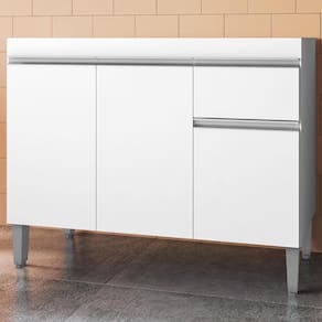 Balcão Para Pia Tatiane, compacto e funcional, ideal para seu dia a dia! Estrutura em MDP (12/15 mm - fundo 3 mm) com acabamento em pintura UV. Composto por portas com dobradiças metálicas, gaveta única com corrediça metálica, ampla prateleira interna, puxadores em alumínio e pés em plástico com regulagem. PIA / TAMPO NÃO INCLUSO. Produto será entregue em 01 volume.