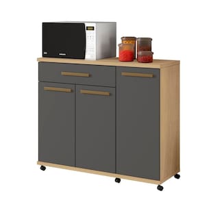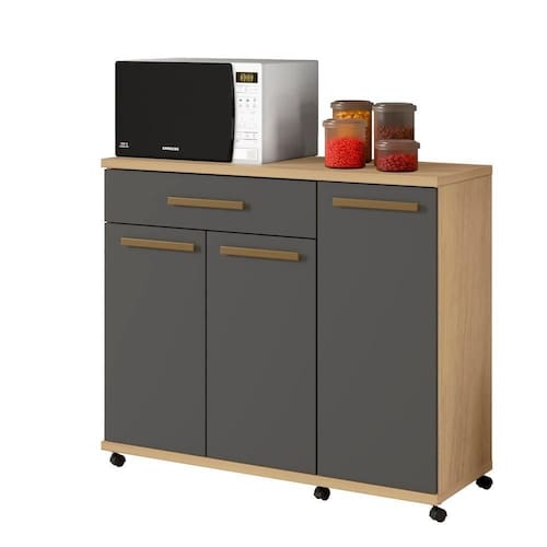 Balcão Parati 3 Portas 2 Prateleiras 1 Gaveta Arte Moveis Cinamomo/grafite Prático e funcional este balcão multiuso foi projetado para usar em diversos ambientes e funcionalidades , organize a sua cozinha, área de , etc. Com comodidade utilizando o mais prático balcão da categoria, com ampla gaveta com corrediça metálica, 03 portas com prateleiras internas e ainda possui rodízios para facilitar na locomoção. Não perca tempo para embelezar ainda mais seu ambiente com este produto versátil. Informações técnicas Acabamento Pintura UV Acabamento Interno Branco Fosco Altura 88 cm Ambiente Principal Cozinha Complexidade da Montagem Média: Pode ser montada por pessoa com conhecimento técnico Cor Branco Escala de Brilho Semi Brilho Estilo Clássico Gaveta com Chave Não Largura 107 cm Material MDF/MDP Material do Tampo MDF Pés Reguláveis Não Peso do Produto 37,00 Kg Peso por Prateleira 5 Kg Possui Gaveta 01 Possui Pés 05 Possui Prateleiras 02 Possui Rodízio Sim Profundidade 39 cm Tipo de Corrediça da(s) Gaveta(s) Metálica Simples Tipo de Porta Bater Tipo de Puxador Externo