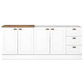 No conceito inspirado nas cozinhas estilo americano. Um conjunto modular de cozinha sendo 3 peças: 1 balcão de 120 cm (sem tampo), 1 balcão de 80 cm (com tampo para Cooktop de 80 cm, usinado para Cooktop de 4 bocas, com pré-marcação para Cooktop de 5 bocas), (NÃO ACOMPANHA FOGÃO COOKTOP). Todo o conjunto com estrutura feita 100% MDF de 15mm (fundo com 3mm, tampo em MDF de 25mm) , portas com dobradiças metálicas 35 mm com amortecimento e fechamento suave, 3 gavetas com corrediças telescópicas suportando 3kg cada, total de 2 prateleiras espaçosas suportando até 8 kg. Cozinha com acabamento em pintura UV texturizada (fosco), portas e gavetas com detalhes de usinagem em baixo relevo, que proporciona beleza e facilidade ao limpar, além do destaque em seus puxadores em metal zamac. Medidas do recorte do cooktop 51,5 x 36 cm. Este móvel chegará na sua casa separado em 03 volumes.