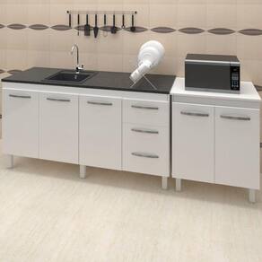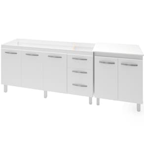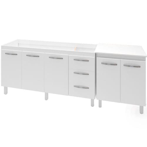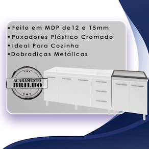 Balcão para Pia Diana e Multiuso Serena, é ideal para quem busca qualidade e sofisticação para compor sua cozinha da forma que desejar. Estrutura em MDP de 12 e 15mm, acabamento em pintura UV. Kit com 01 balcão para pia de 150cm de 3 portas e 3 gavetas e 01 balcão Multiuso, com 02 portas articuladas, dobradiças metálicas, puxadores em plástico cromado, espaço para utensílios, acompanham pés fixos que garantem a firmeza que o móvel precisa. Produzido com controle de qualidade e com excelente acabamento. Este móvel chegará em sua casa separado em 02 volumes.