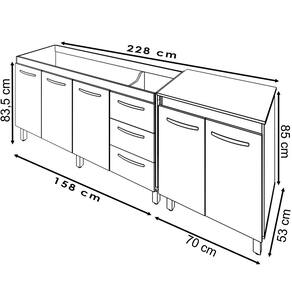 Altura 85 x Largura 228 x Profundidade 53 cm