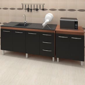 Balcão para Pia Emily e Multiuso Serena, é ideal para quem busca qualidade e sofisticação para compor sua cozinha da forma que desejar. Estrutura em MDP de 12 e 15mm, acabamento em pintura UV. Kit com 01 balcão para pia de 160cm de 3 portas e 3 gavetas e 01 balcão Multiuso, com 02 portas articuladas, dobradiças metálicas, puxadores em plástico cromado, espaço para utensílios, acompanham pés fixos que garantem a firmeza que o móvel precisa. Produzido com controle de qualidade e com excelente acabamento. Este móvel chegará em sua casa separado em 02 volumes.
