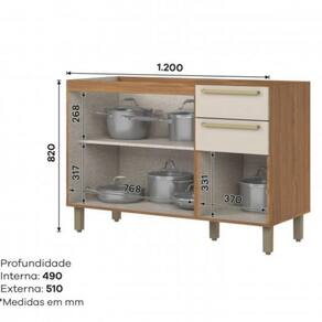 Balcão Pia 3 Portas 2 Gavetas 1.20 Requinte Henn Areia/nature Cozinha com modulos independente de facil arranjo, pintura facil de limpar e amplo espaco interno. A combinacao perfeita de mobiliario e design.